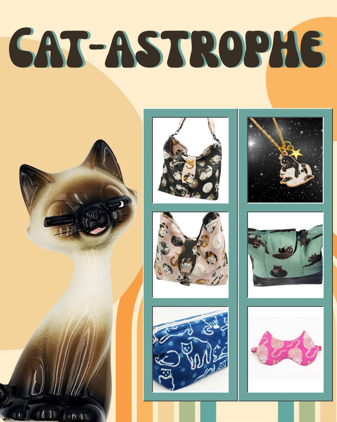 Handmade Cat Print Zip-Up • Large Tote with Pockets