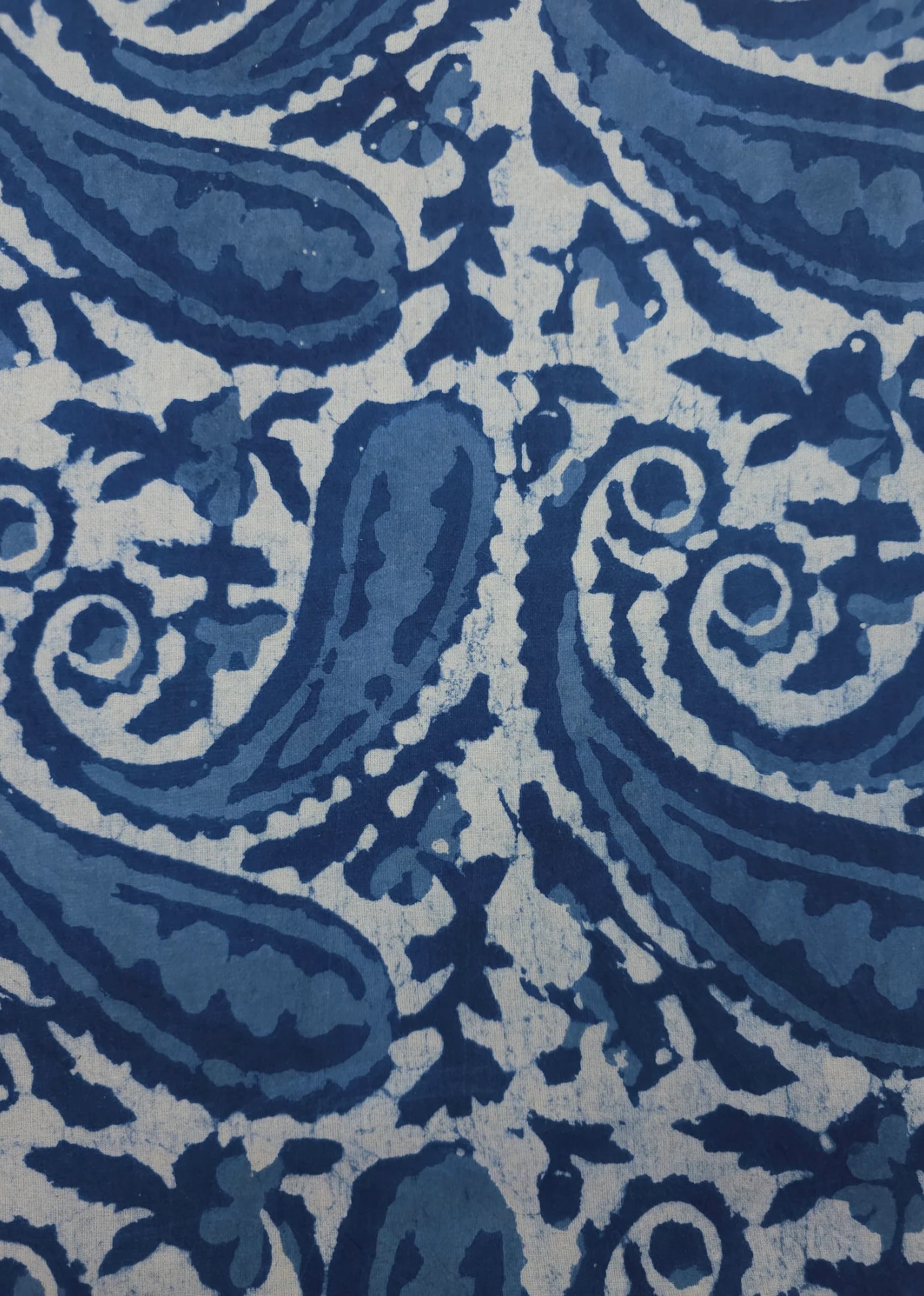 - 💙 Authentic Block Print Fabric – handcrafted paisley design in rich indigo blue for a classic, artisanal look.