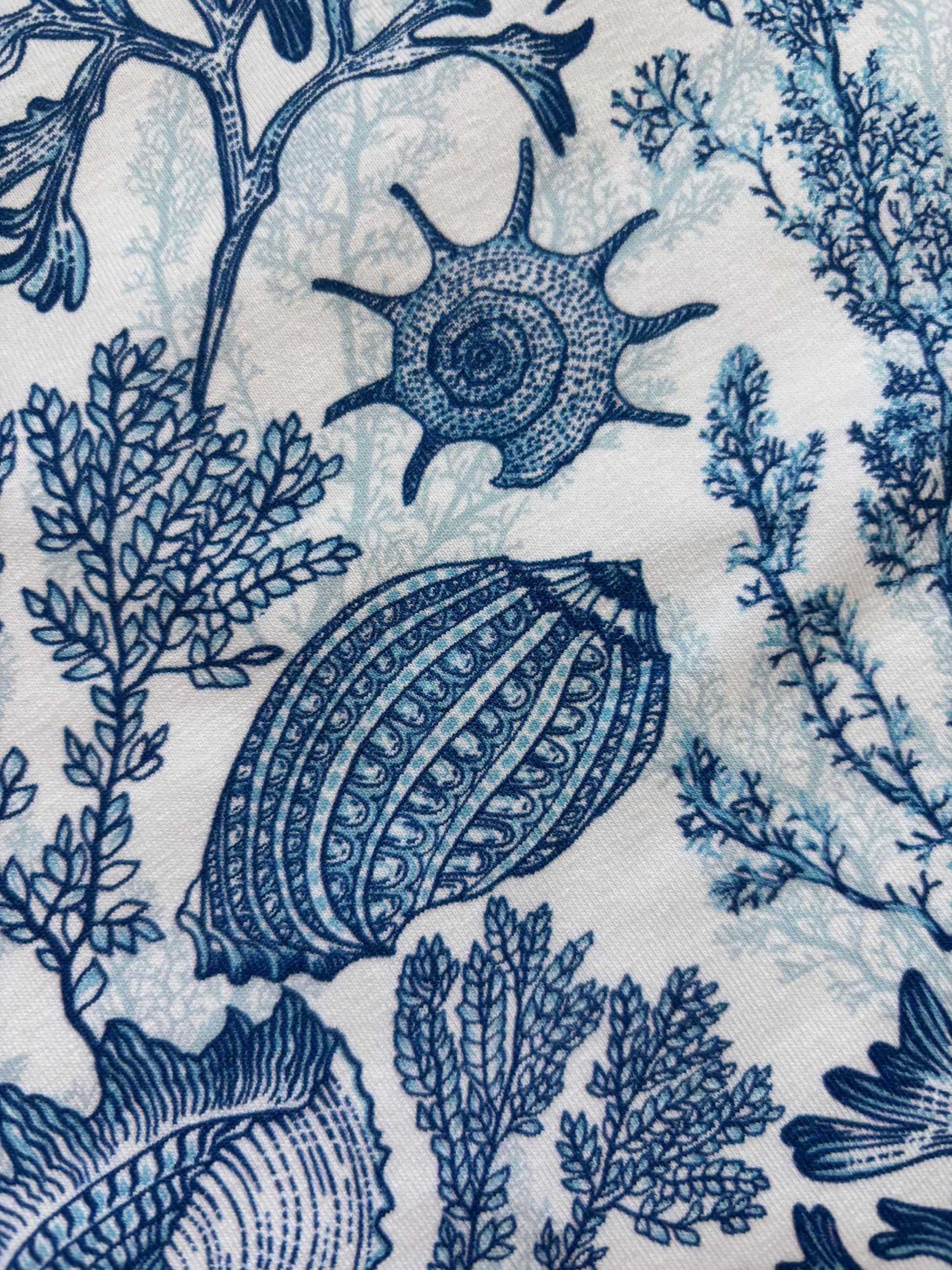 A beautifully soft jersey tank top featuring a delicate blue and white marine life print — perfect for seaside days, holidays, or relaxed summer styling.