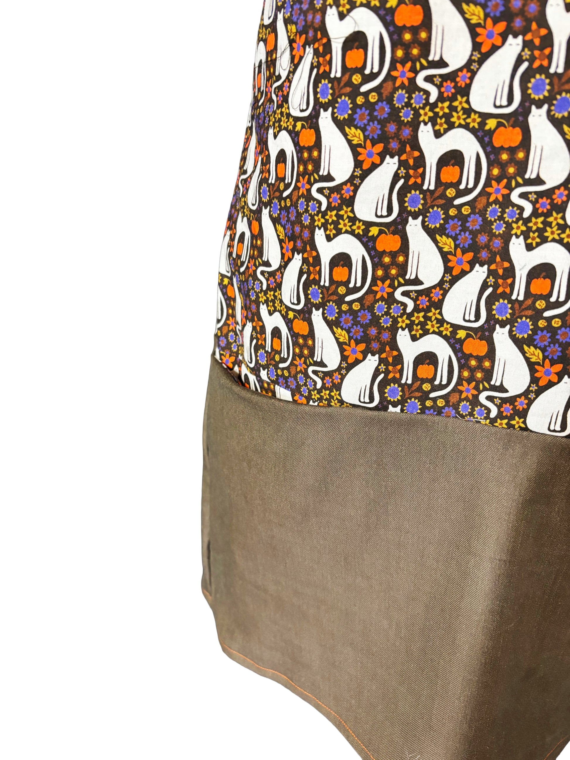 This retro cat print shift dress is a joyful statement piece, handmade from a cotton top and silk blend skirt for a soft, breathable and comfortable fit. Designed with a classic sleeveless shift silhouette, it’s easy to wear, flattering, and perfect for everyday styling.