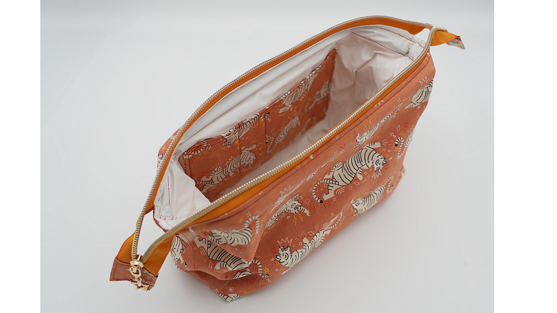 • 🐯 Bold Tiger Print Fabric – vibrant orange and warm cinnamon tones make this wash bag stand out with a touch of wild luxury.